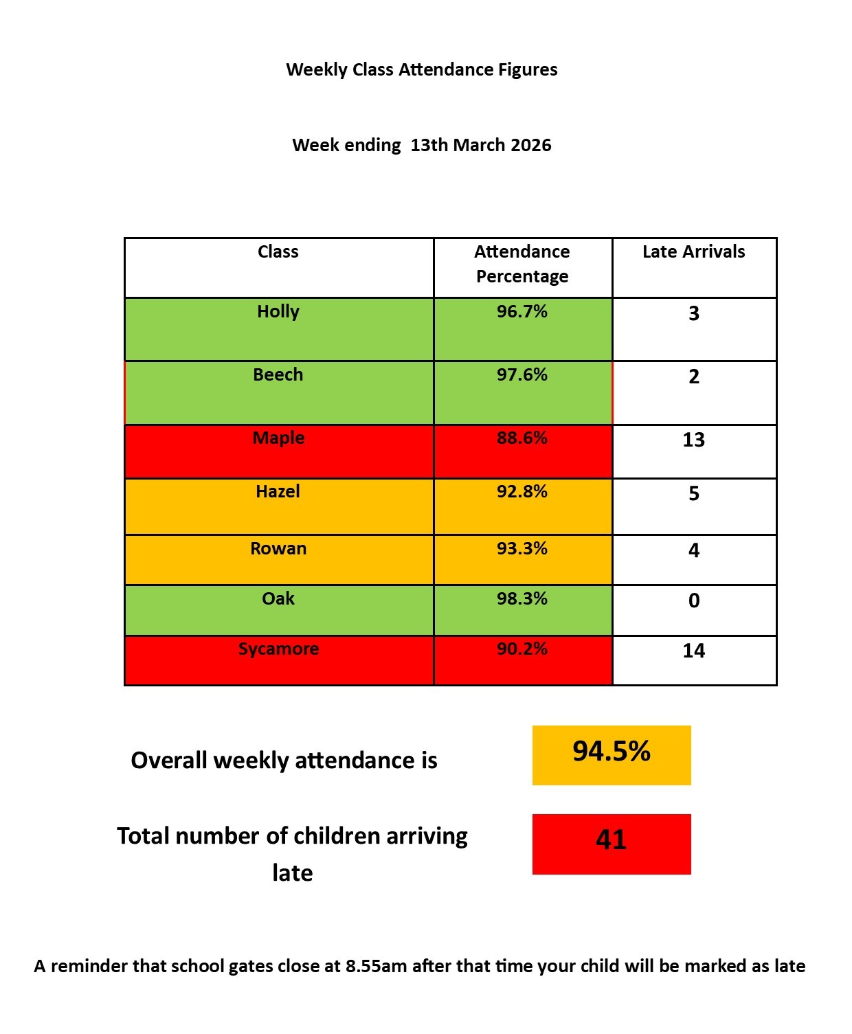 Whilst overall our pupils arrive at school on time, we can still have a small number of pupils who can arrive late to school. Parents may not be aware of the difficulties experienced by children even when they are only a few minutes late each day.