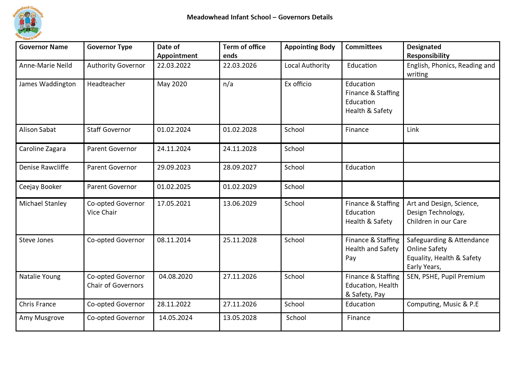 Please find below details of how our Governing body is structured, including the names, categories, responsibilities and terms of appointment for each Governor.